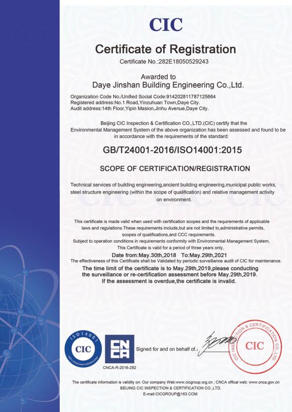 大冶金山建筑工程有限公司始建于1984年,屬鎮(zhèn)辦集體企業(yè)。1997年改制為大冶山建筑工程有限責(zé)任公司,屬股份制企業(yè)。2013年更名為大冶金山建筑工程有限公司,2018年3月公司資源重組,公司注冊(cè)資金達(dá)到10180.00萬(wàn)元,公司法定代表人為劉瑞華。公司具有古建筑工程專(zhuān)業(yè)承包壹級(jí)、建筑工程施工總承包貳級(jí)、市政工程總承包叁級(jí)、鋼結(jié)構(gòu)工程專(zhuān)業(yè)承包叁級(jí)資質(zhì)。